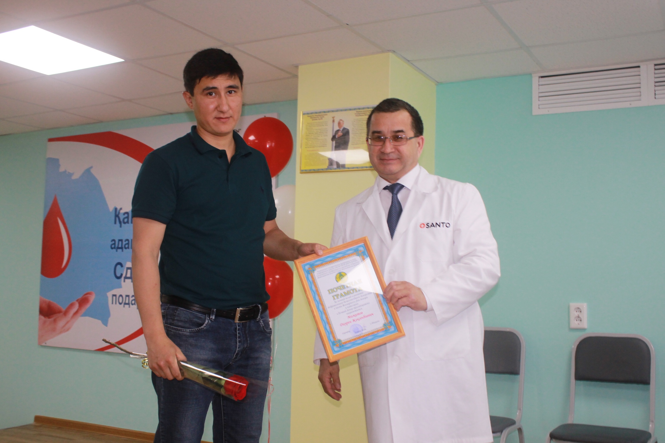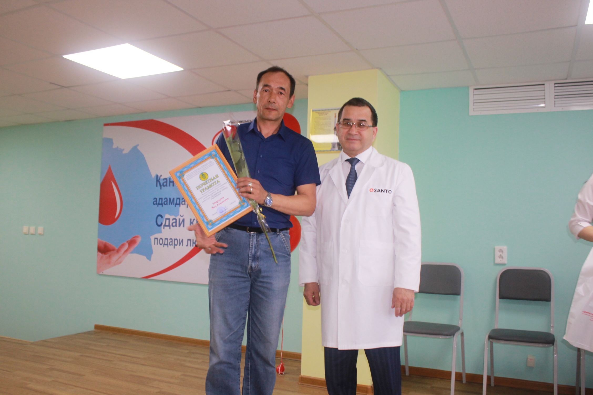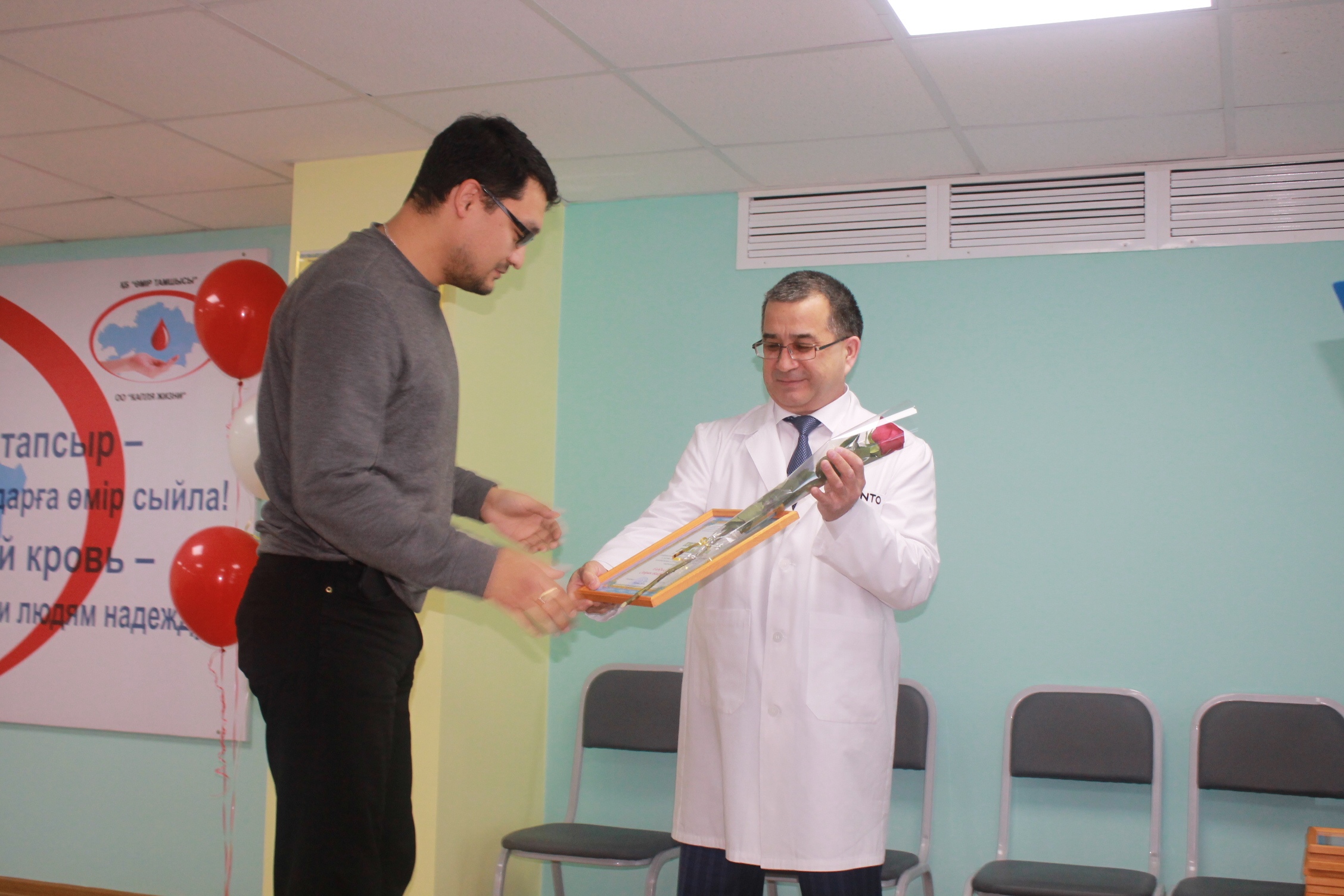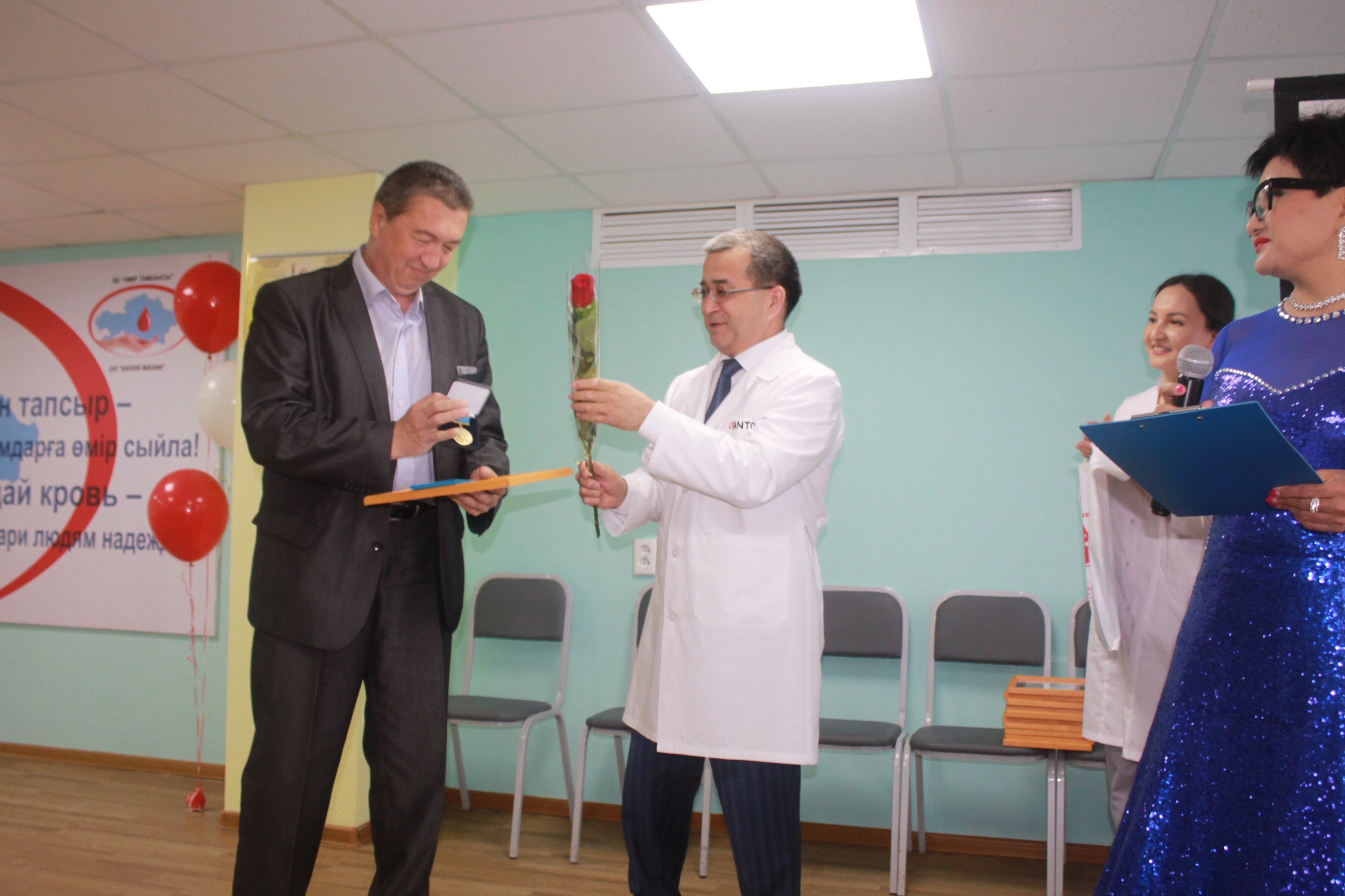 Директор Областного центра крови Таукелов С.А. выступил с поздравительной речью, и подчеркнул о важности данного праздника, о важности развития безвозмездного добровольного донорства.