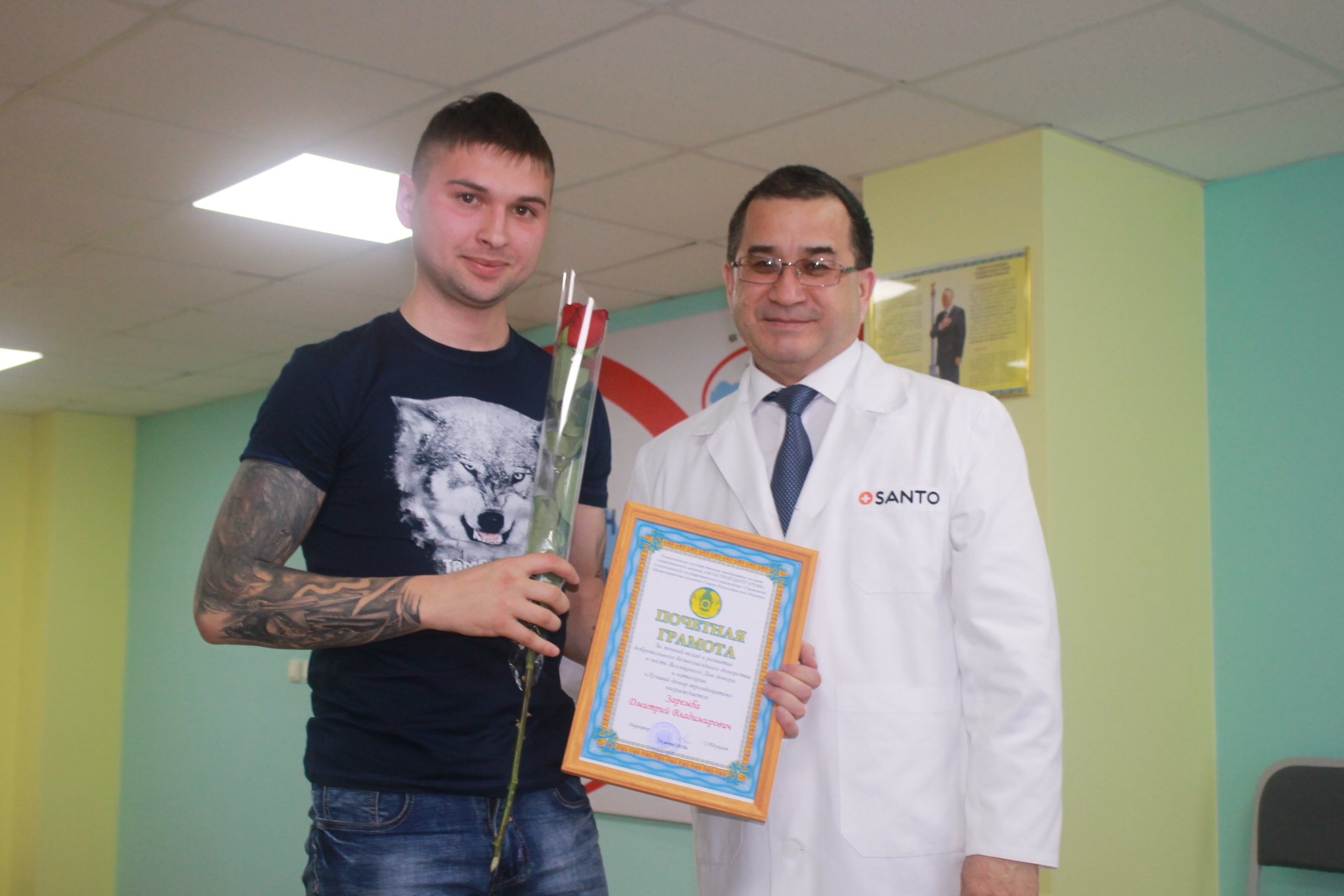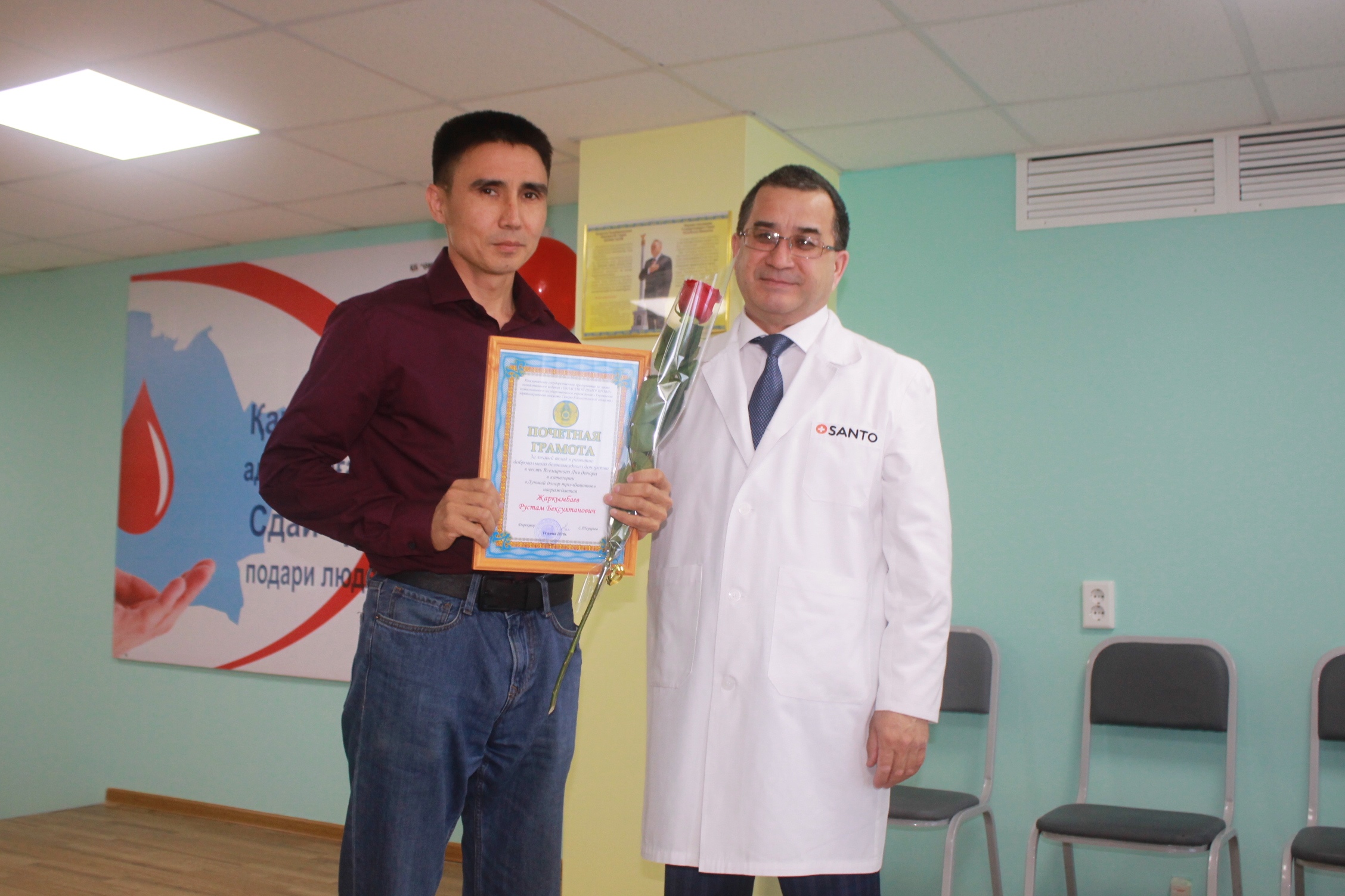 Донор Шадрин Виктор Владимирович награжден нагрудным знаком почетного донора Министерства Здравоохранения РК «Денсаулық сақтау ісіне қоскан үлесі үшін» и благодарственным письмом за личный вклад в развитие добровольного безвозмездного донорства.